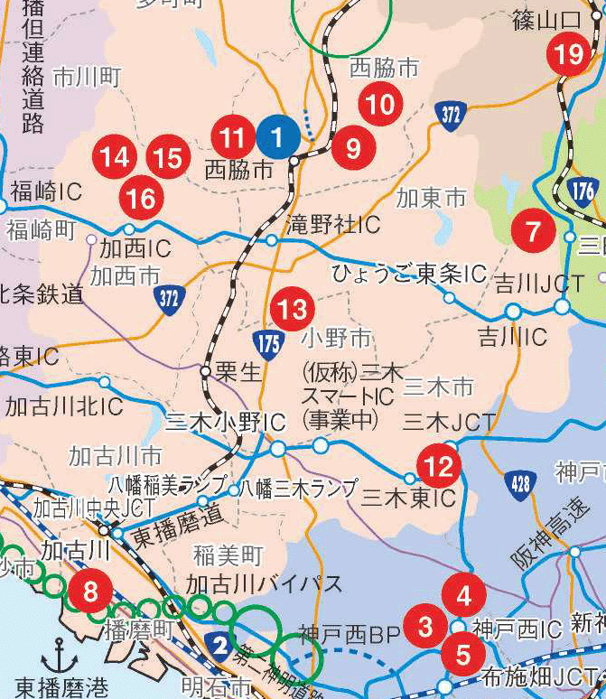 | 14 | 开赛国际工业园区 | 加西市中富町、殿原町、小清水町 |